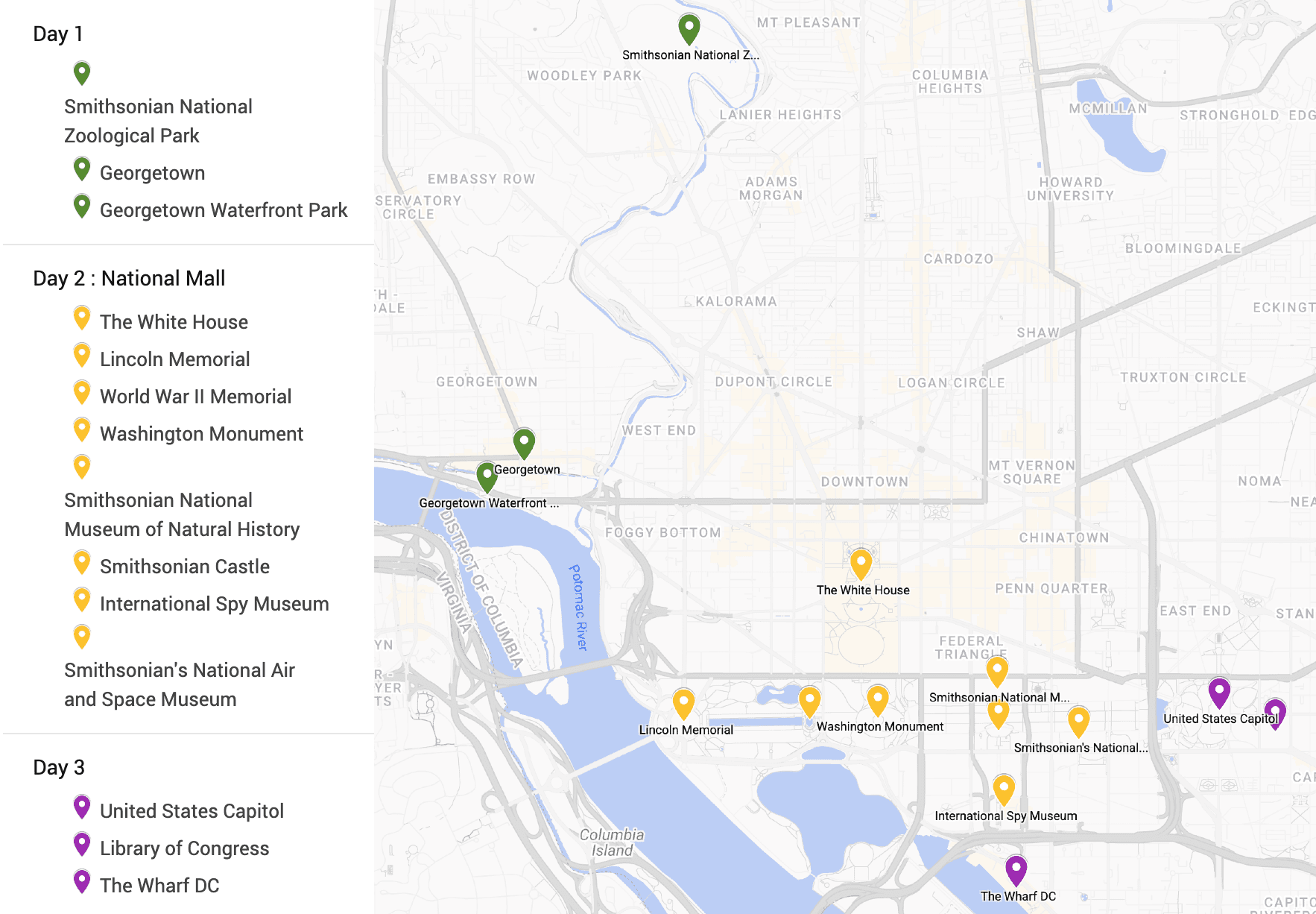 Day 3 | Capitol, Library, Wharf | 150 USD for 2 |